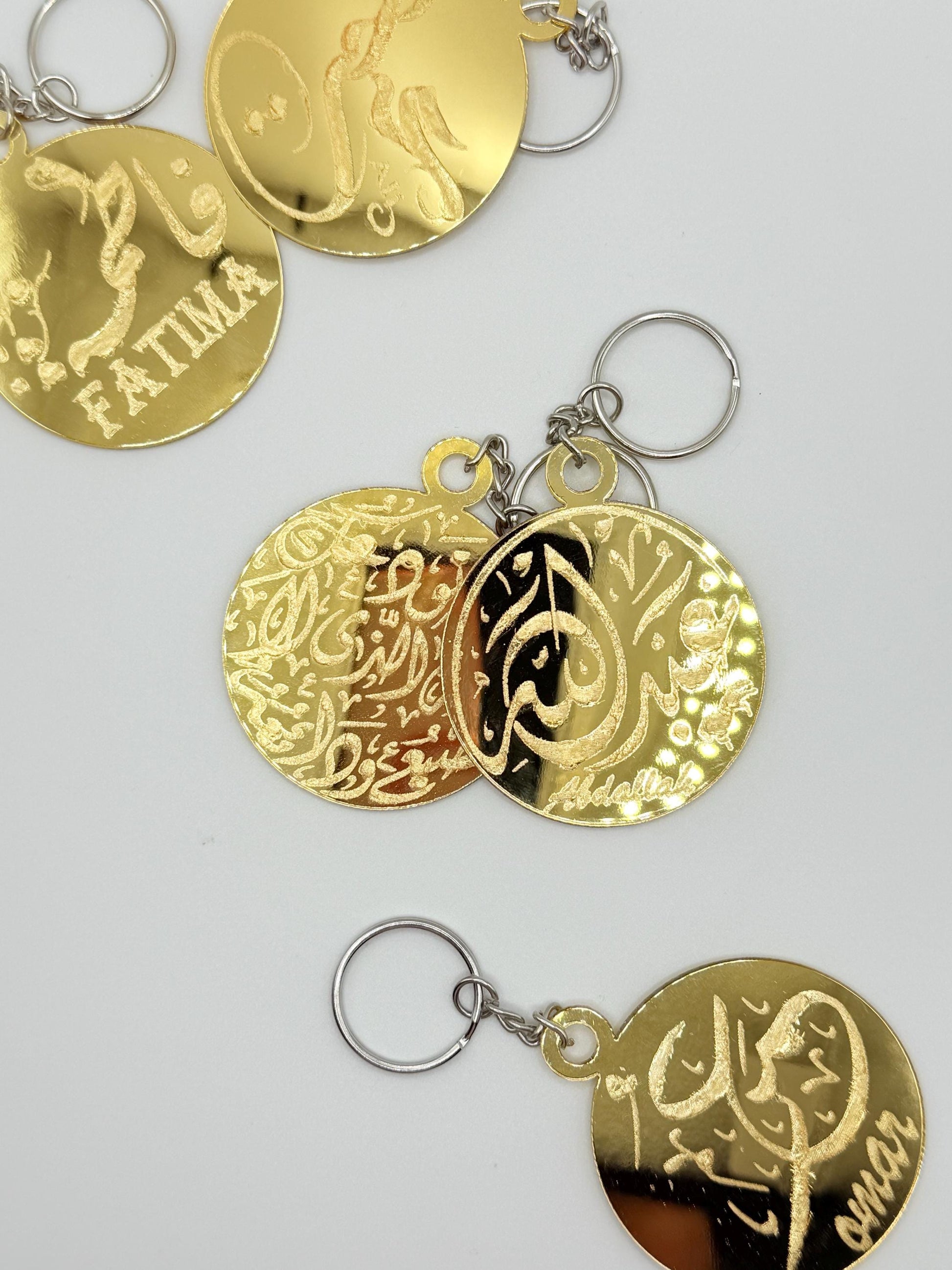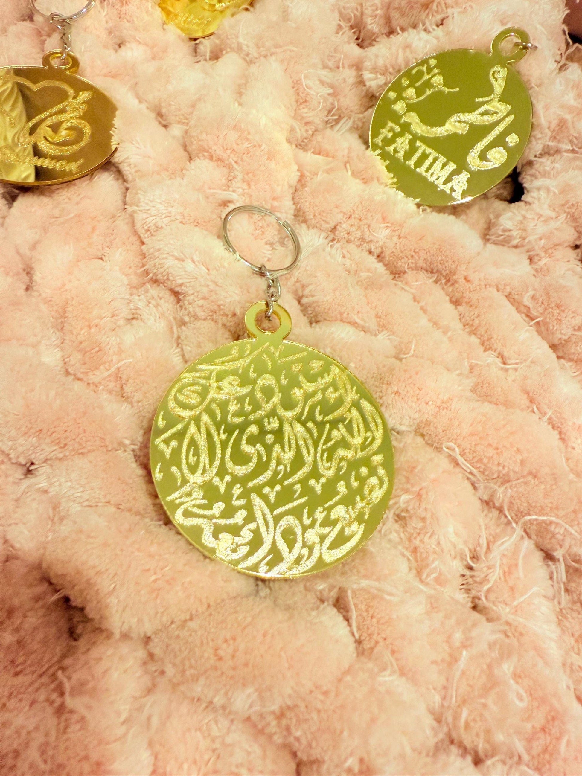 This is a new elegant piece. It is 2.5 inchs and is a keychain with a dua that says أستودعك الله الذي لاتضيع ودائعه