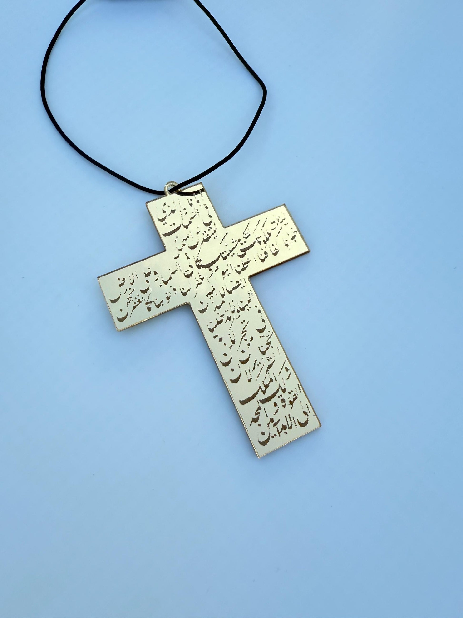 This unique car hanging cross is crafted from premium mirror acrylic and engraved with Arabic prayer for a spiritual reminder wherever you go. Available in gold or silver, it shines beautifully in the sunlight, adding both protection and elegance to your car.