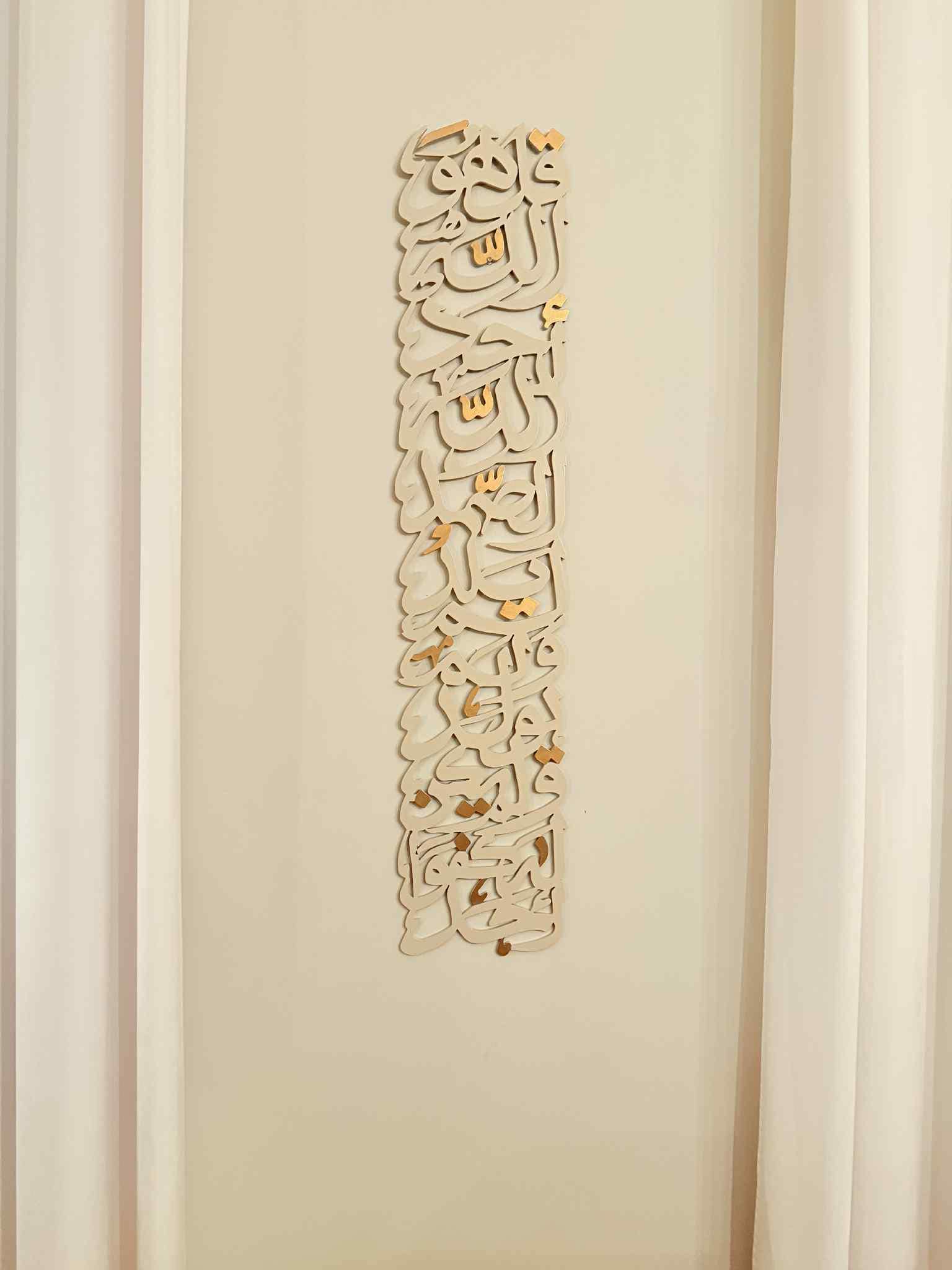 Arabic Wall Art – Surah Al-Ikhlas Vertical Calligraphy – Islamic Wall Decor for Muslim Home – Laser Cut Acrylic or Wood