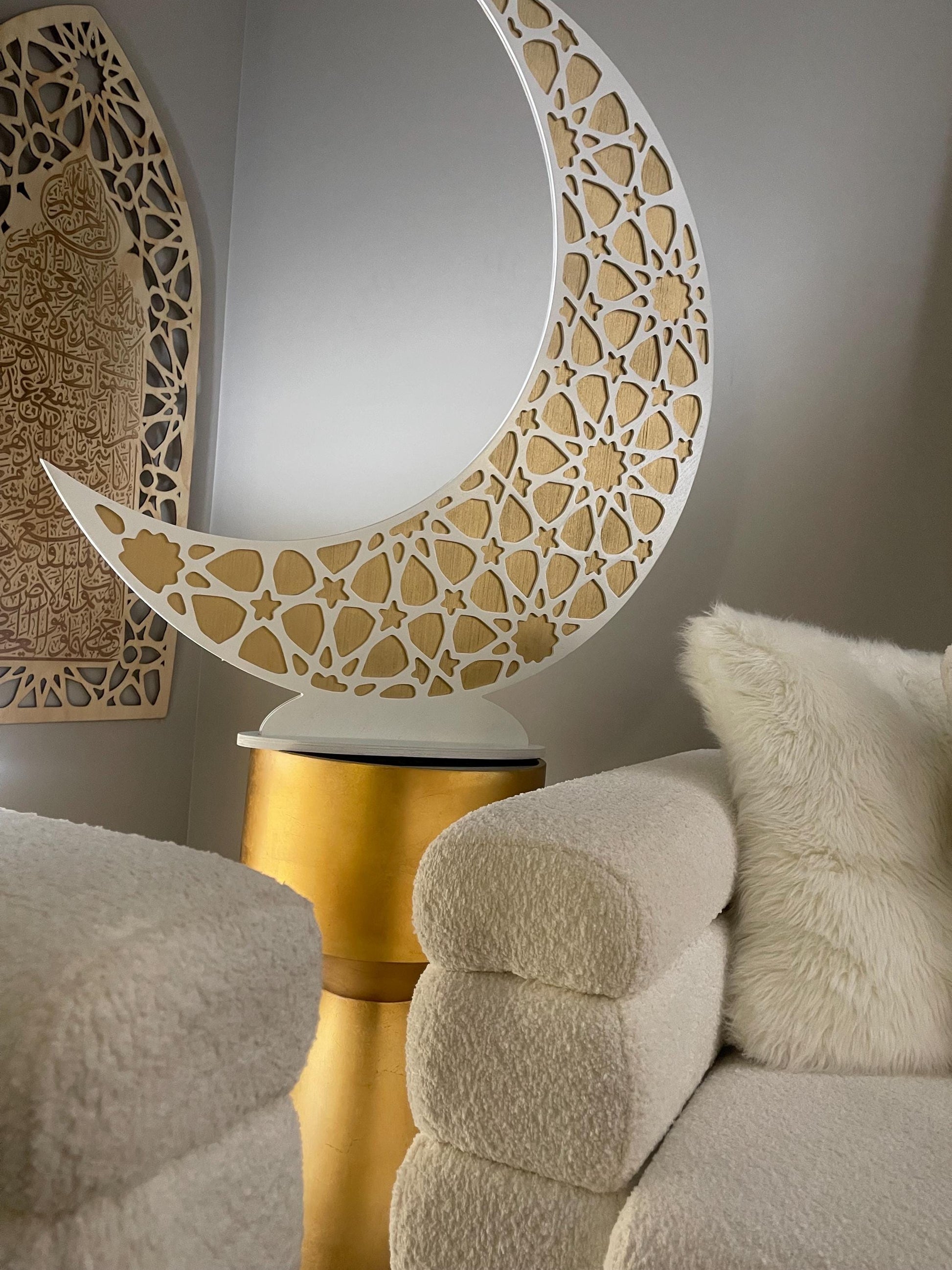 This Limited piece is 35x6x36 Inches made out of 0.5 Inch wood. This would be a great gift for Ramadan or Eid or any occasion you would like. There are some options to the colors, you can select the inner color and the outer color for an example according to the listing picture the inner is gold and outer is White. I can also make any other design or anything custom you would like just feel free to reach out and I will respond asap.