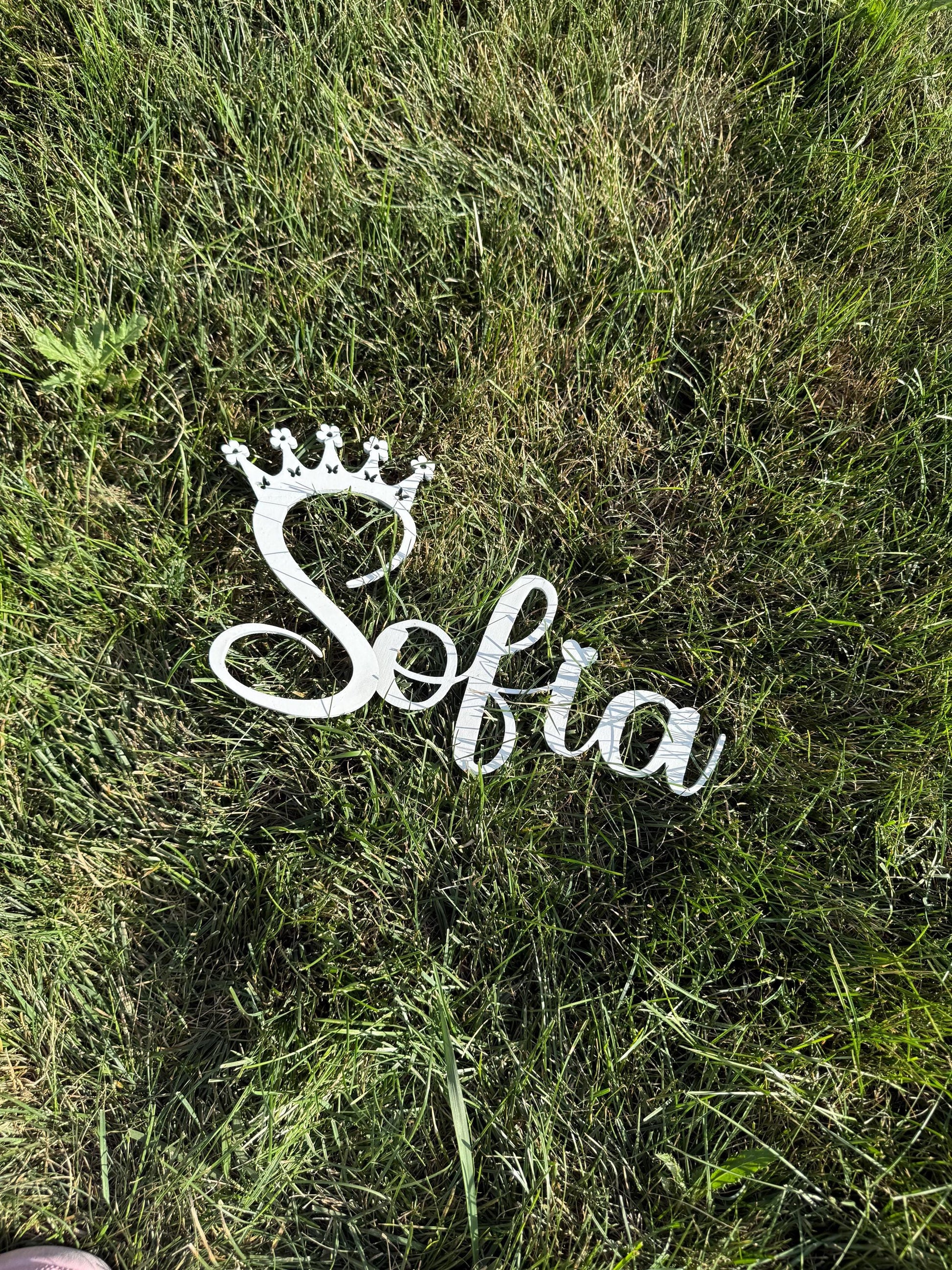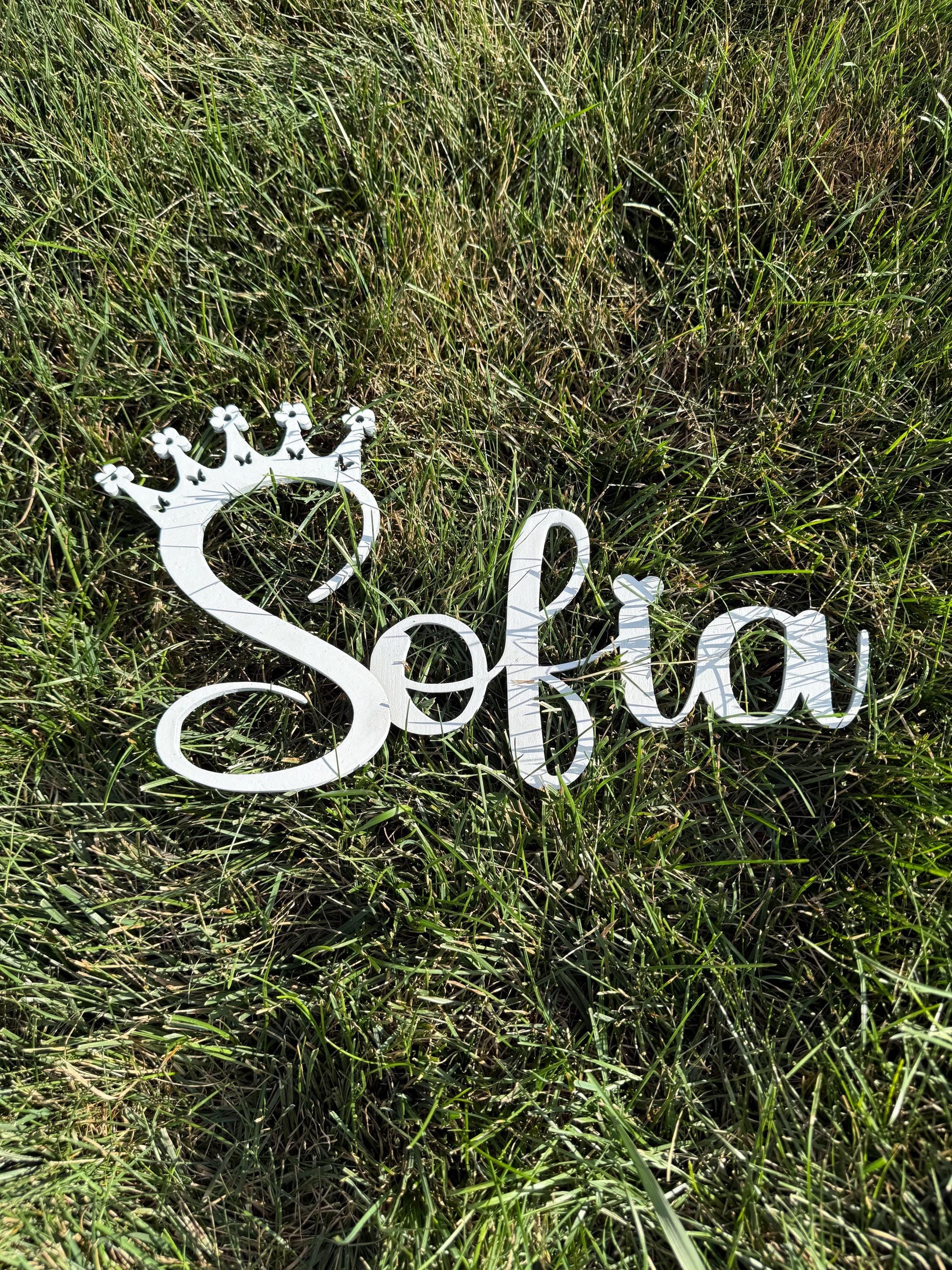 • Sizes available: 12″, 18″, 24″, 30″, 45″ wide (height depends on name length + crown)