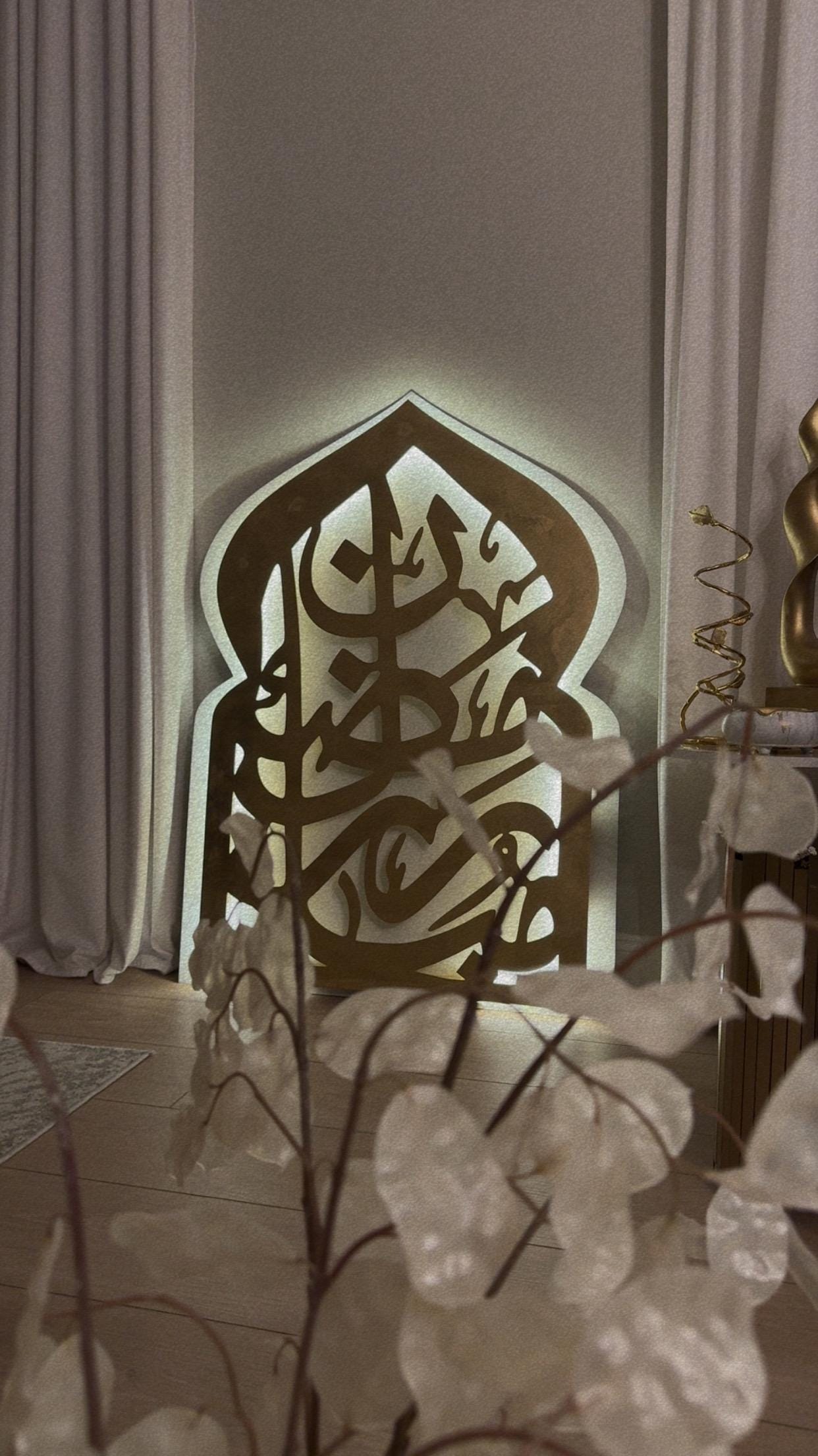 Bring the spirit of Ramadan into your home with a one-of-a-kind Islamic wall art piece, designed to feel like a mihrab and illuminated with a warm, spiritual glow.