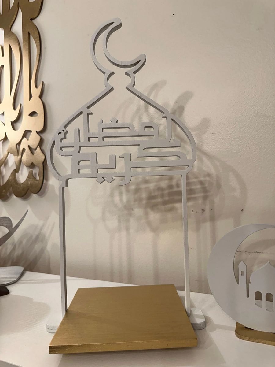 This Elegant Piece was made to be a Islamic Ramadan Stand It Has 2 sizes a 14x7 Inches size for $45 and a 20x10 inches size for $55 it is both made with 1/2 inch thick wood if you would like a different size feel free to contact Me and I will Make it Work for You.
