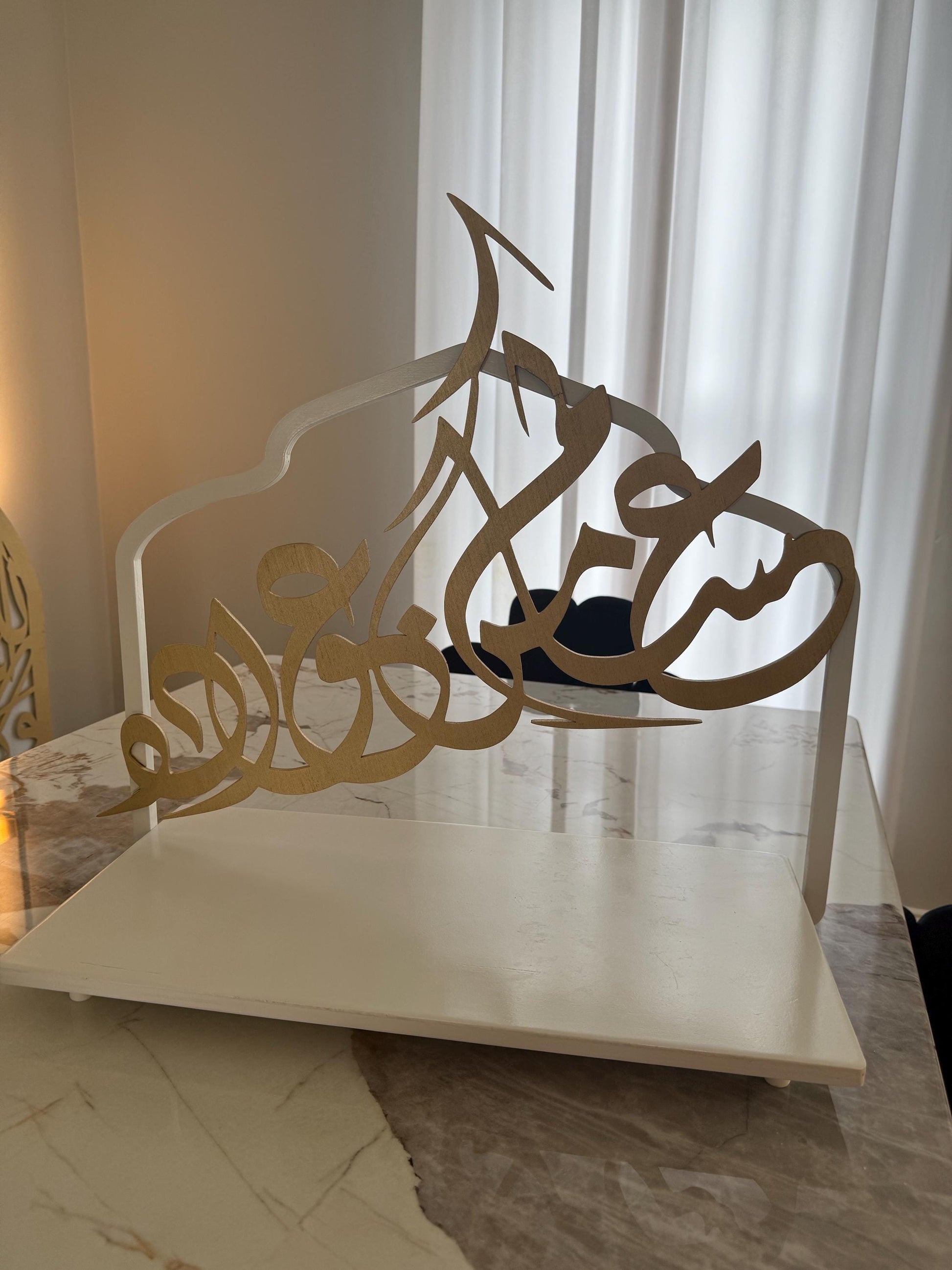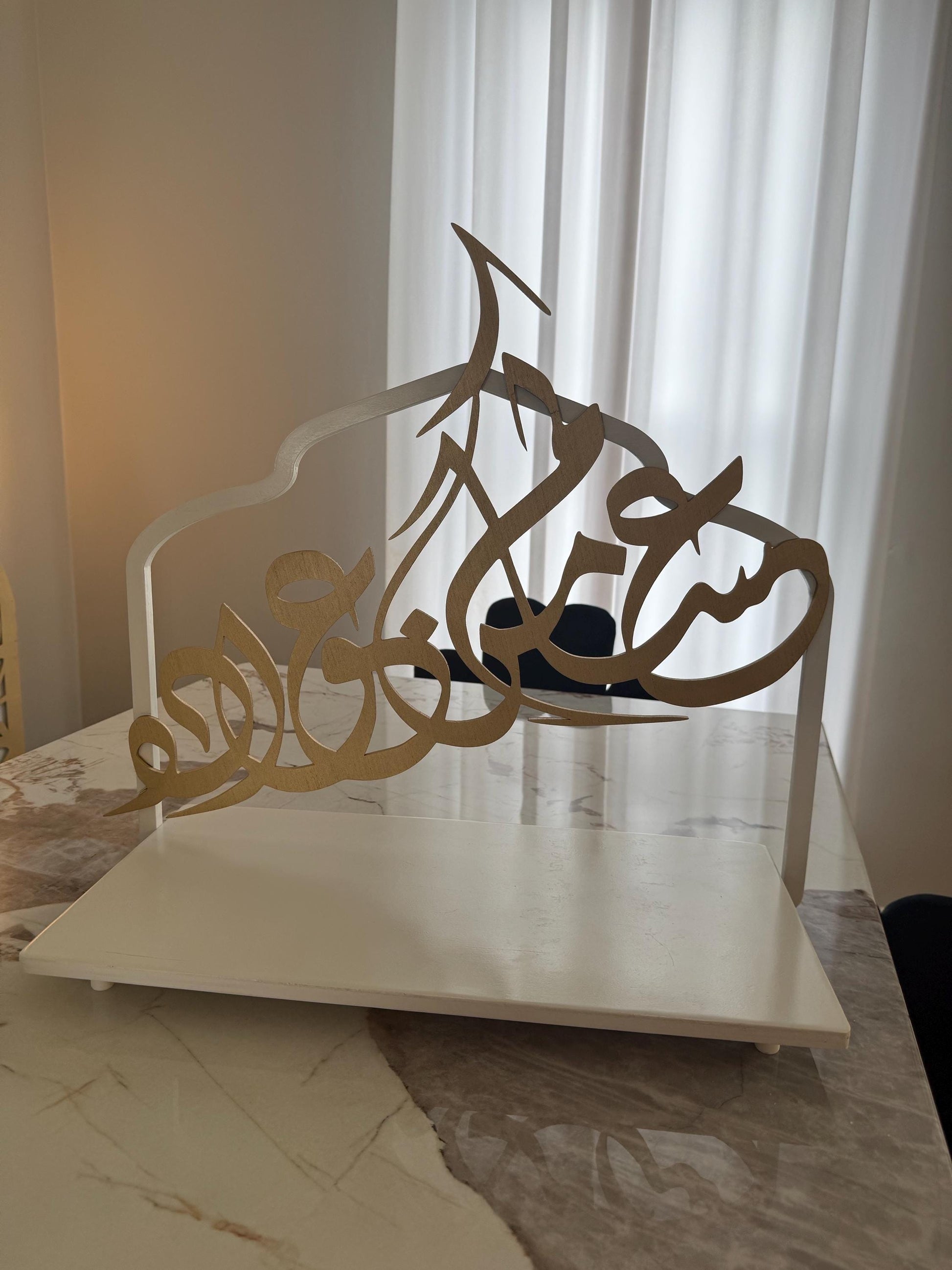 This One of a kind piece is 22x10x20 Inches. This Exquisite Piece can be used for any islamic holiday and would make an amazing gift. If you would like a unspecified color or a custom size or have any ideas or questions please feel free to reach out and I will respond Asap. The writing says. easakum min eawadih