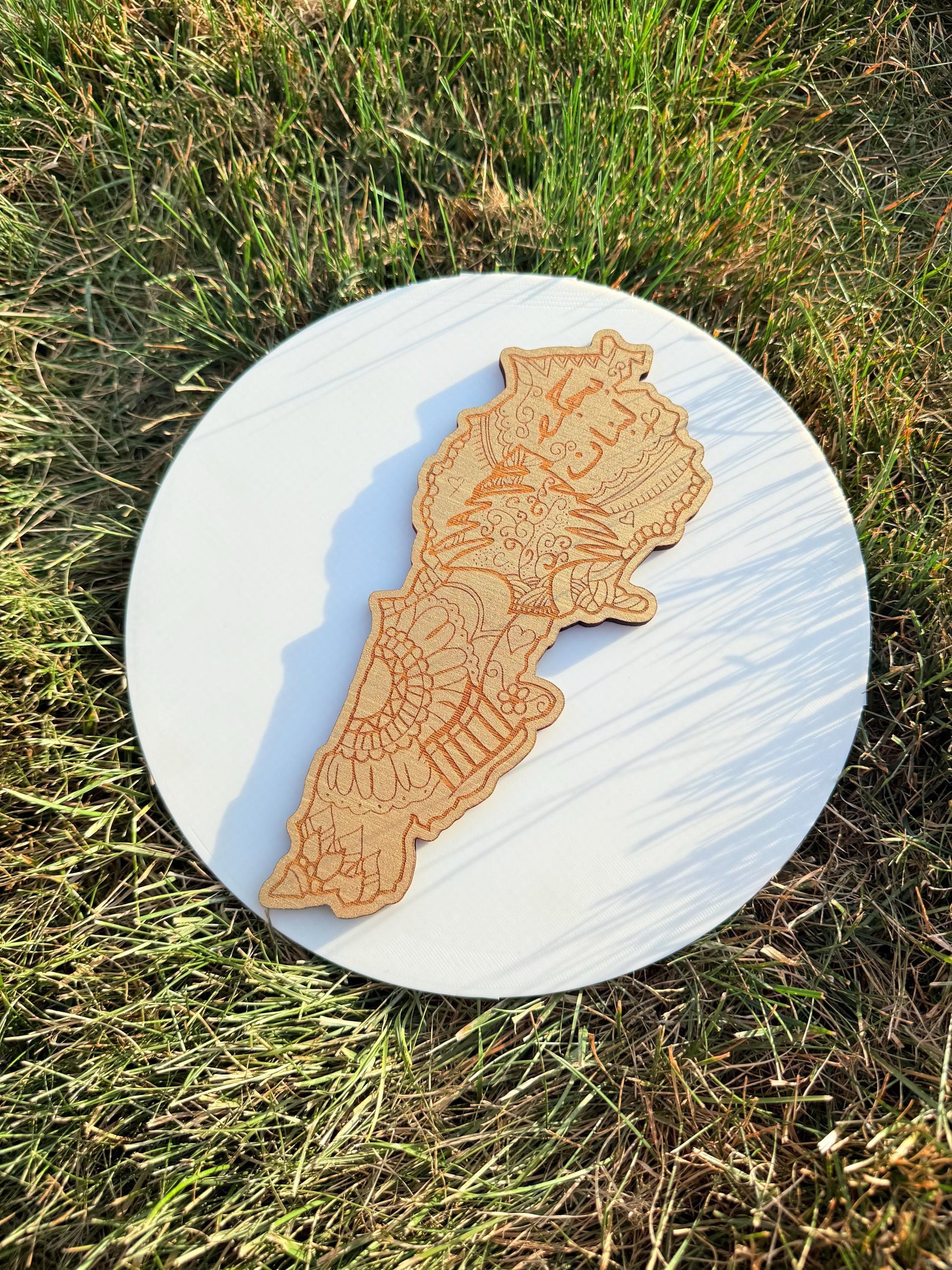 • Material: 5 mm laser-engraved wood