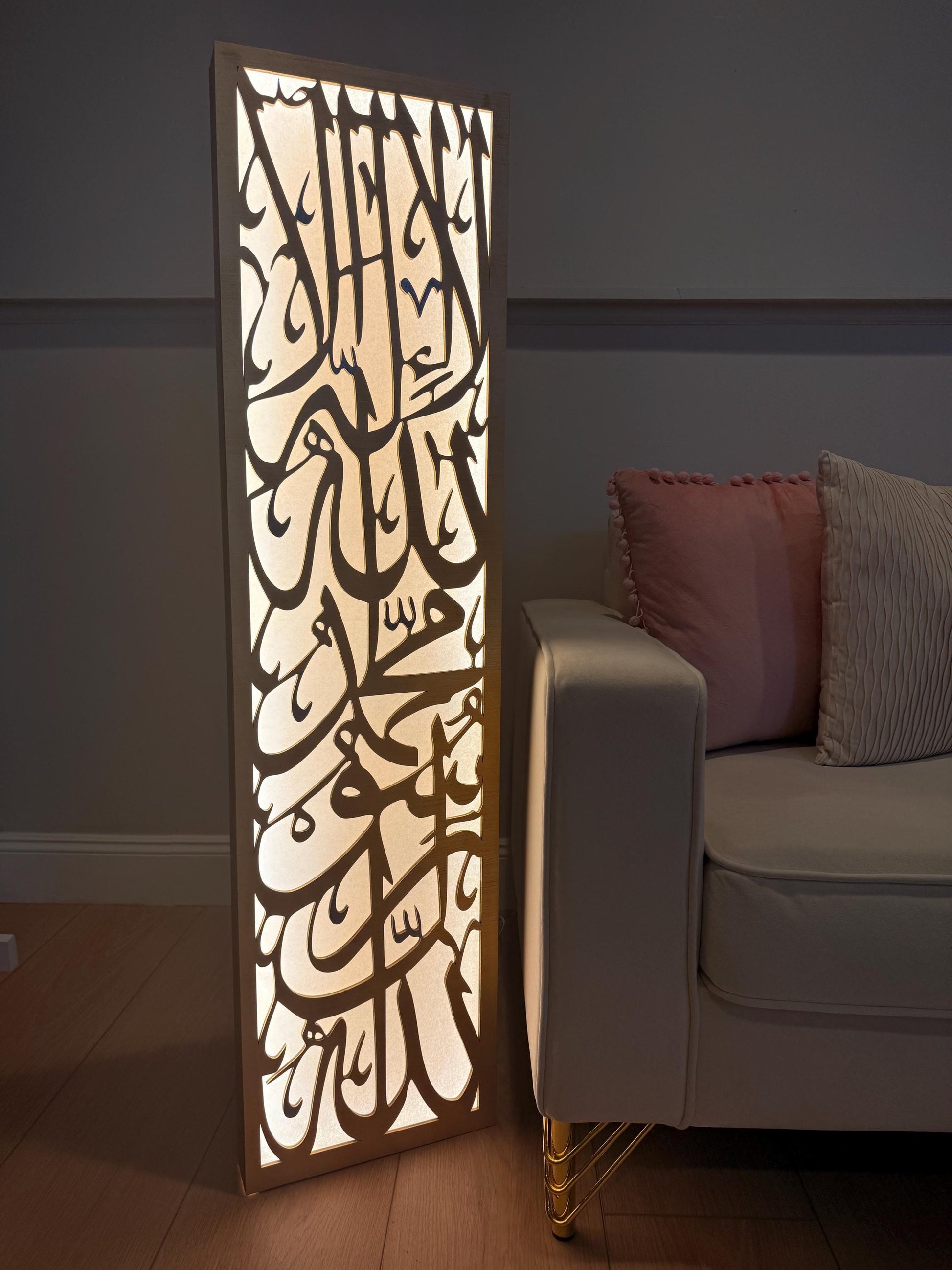 Transform your living space with this luxury standing Arabic calligraphy light, a statement piece that blends traditional Middle Eastern artistry with modern elegance.
