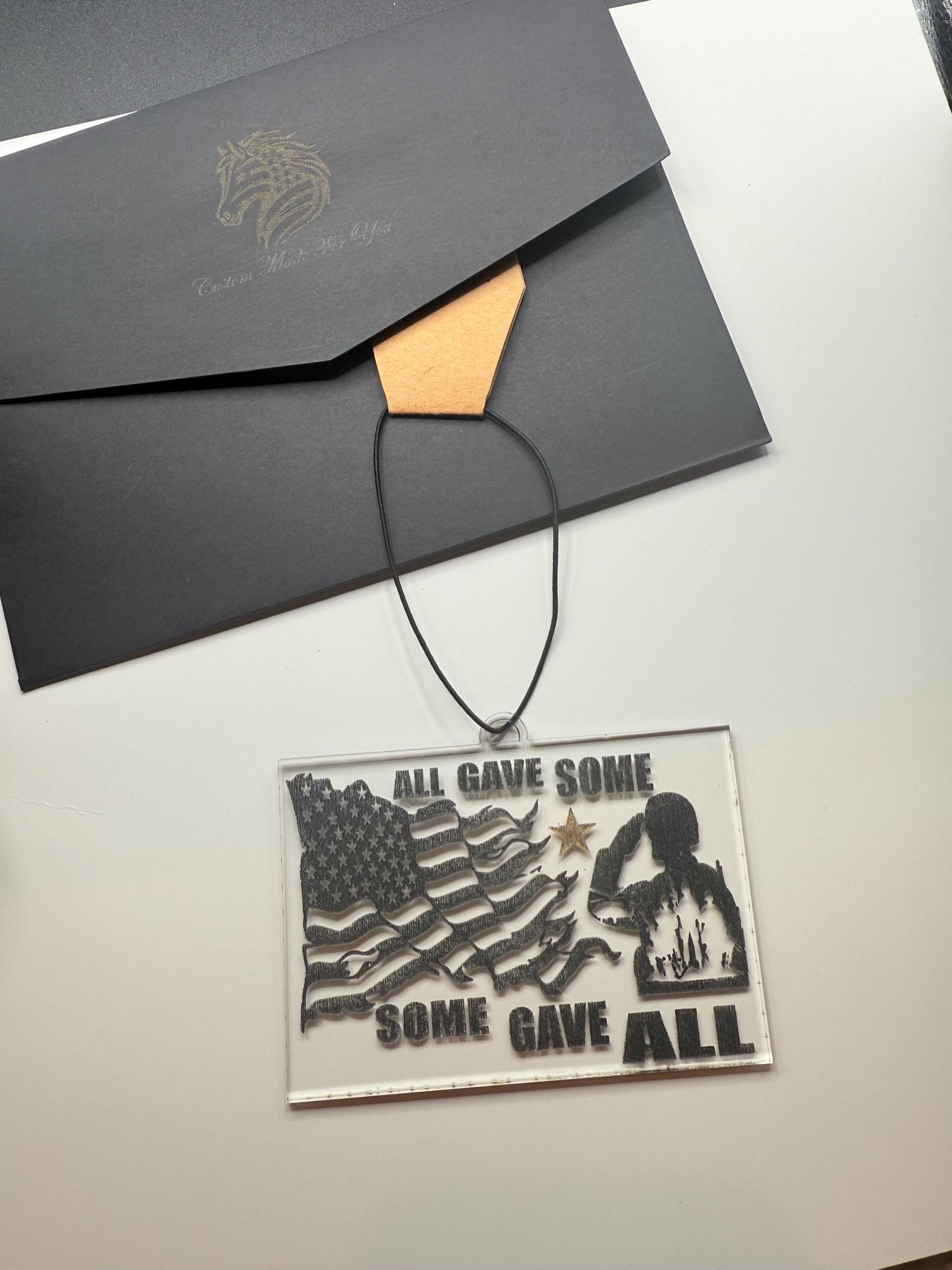 Memorial Car Pendant | “All Gave Some, Some Gave All” Acrylic Hanging Charm | Patriotic Veteran Gift | Handmade USA Military Tribute