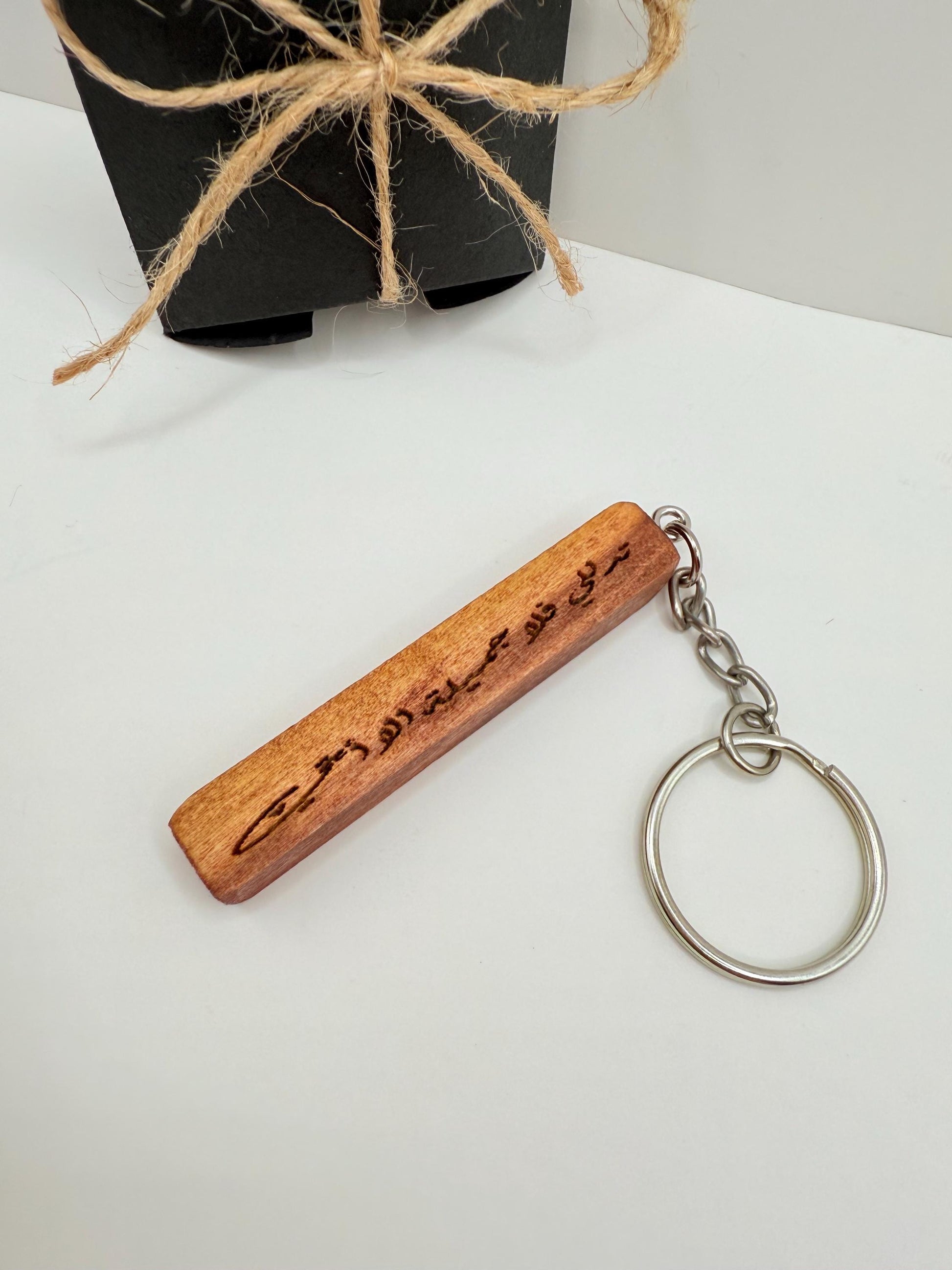 Add a refined touch to your everyday essentials with our personalized double-sided wooden keychain β¨